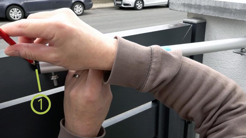 Note: In most cases, the pre-loading security bolt loosens by itself during this procedure. In case that the bolt remains, carefully move the gate just a few millimetres towards its opening direction!