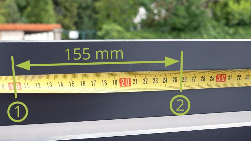 Attention: If you adjust the position of bracket 1 later, bracket 2 must be re-positioned as well to ensure the correct hole-to-hole distance.