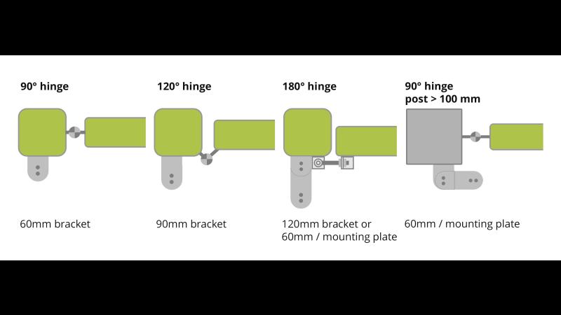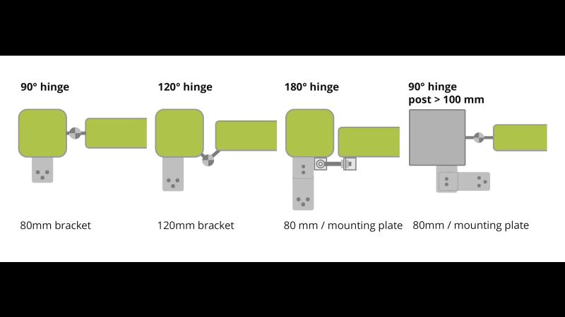 To find out which bracket is best for your gate, have a look at the hinges.